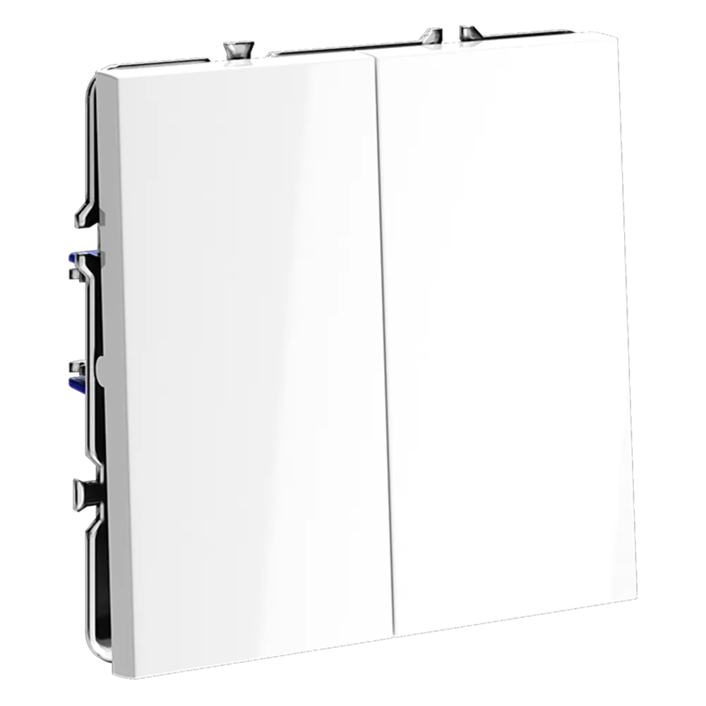 Двухклавишный проходной переключатель VOLTUM S70 в цвете «белый глянцевый» — это продвинутое решение для независимого управления двумя группами освещения из двух и более точек. Идеально подходит для просторных гостиных, спален с отдельной зоной отдыха, офисов и многоуровневых помещений, где требуется гибкость и удобство управления светом — например, у входа и у изголовья кровати.