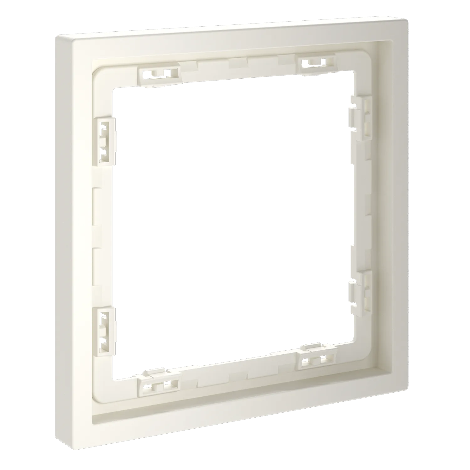 Обеспечивает быстрое и легкое соединение механизма с рамкой. Восемь фиксаторов по периметру нивелируют неровности стены и надежно удерживают конструкцию.